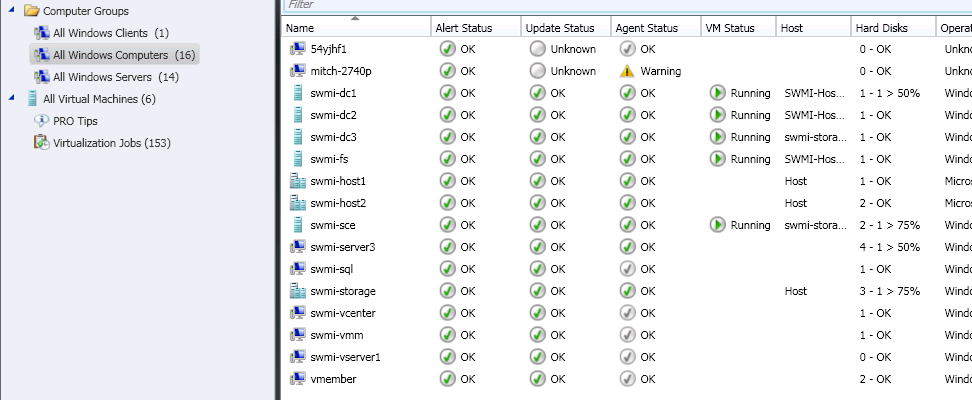 Of course, a few of my virtual machines are off, and my laptop is configured to get updates from Windows InTune rather than SCE, but as long as I know what the warnings are, I am happy!