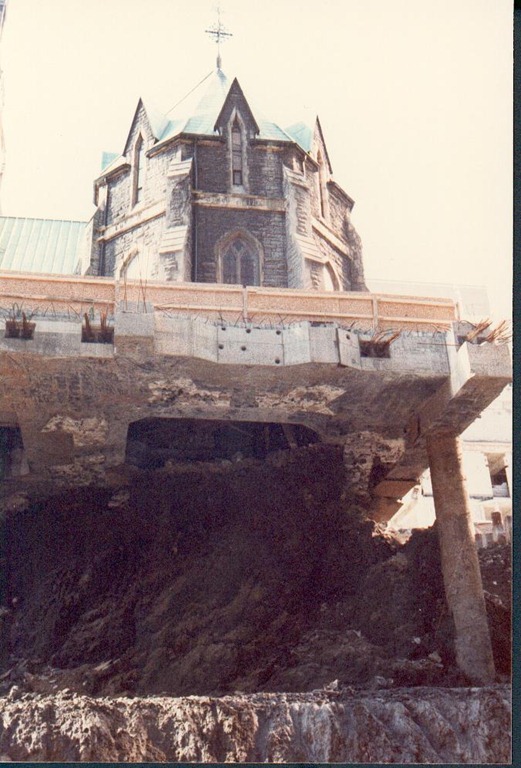 - The strangest idea is what they actually ended up doing… they dug under the church, essentially putting the building on stilts, and built an underground shopping mall, which today is known as Promenades de la Cathedrale. It is a multi-level mall with over fifty stores and a food court, along with underground parking. It is an architectural feat that must have taken a year to design and longer to plan. The steeple of the cathedral, however, is no higher than it was in 1867, and the project was executed successfully with movements never exceeding 3/16” inch.