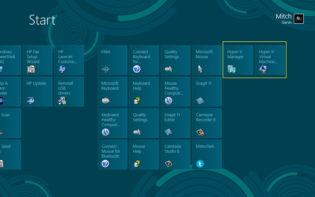 As it is in Server, installing Hyper-V requires multiple reboots (see my article titled ‘Layer 1 or Layer 2 Hypervisor? A common misconception of Hyper-V, and a brief explanation of the Parent Partition’) but because of the greatly improved boot time of Windows 8 that takes less than a minute (even in my Multi-OS, Boot-to-VHD system). Once you are back in, the Metro Start screen has two new tiles:
