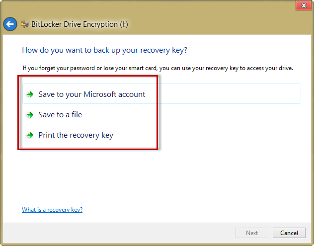 The option to save your recovery key to a Microsoft account (new name for a Live ID) is new in Windows 8, and is very convenient. However if you have several encrypted volumes remember to name them appropriately so that you will remember what is what!