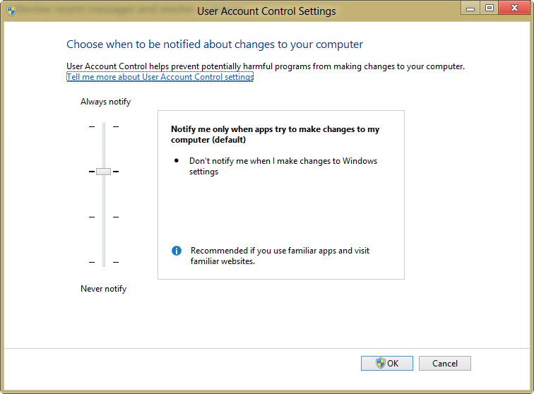 Unlike most people I was (and am) a big fan of User Account Control (UAC) in Windows 7 (and even Vista). I have often referred to it as the ‘Are you really sure you want to do something stupid?’ button; it let you know that you were about to do something that would affect your PC, and to proceed with caution.