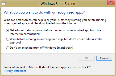Don’t misunderstand… this is not Big Brother. If you really want to install the application then it will still let you. SmartScreen is just another way Windows has to let you know that you should be careful. Of course there are people who would say ‘Let me do my thing, and stop pestering me!’ For those people you can simply turn off SmartScreen.