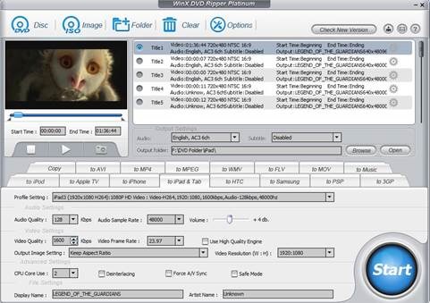 During the test, the first good impression from this DVD ripper is the “Profile Setting”, which makes it much more convenient to find the setting compatible with portable devices supported by this DVD ripper without looking for suggestions online. And soon you will get ripped video fully playable with iPad 3 on your PC. Without any other third-party program, you can also rip homemade & commercial DVDs to other devices. All you need is a single piece of WinX DVD Ripper Platinum.