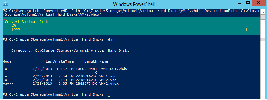 Convert-VHD -Path C:\ClusterStorage\Volume1\VHDsVM-1.vhd -DestinationPath C:\ClusterStorage\Volume1\VHDsVM-1.vhdx