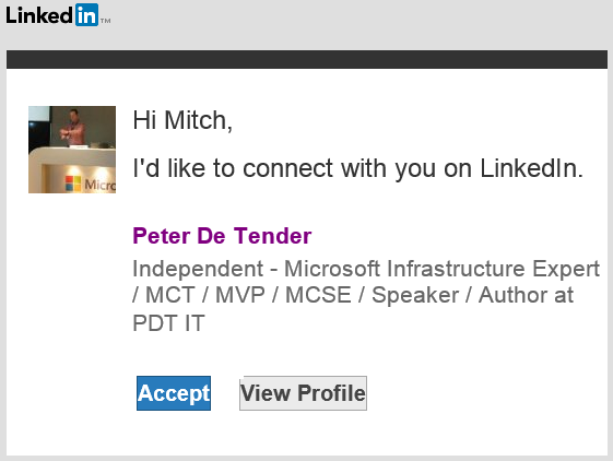 Because there is an address in the e-mail (I think it is LinkedIn’s main offices) the Bing Maps option appears; however it is the Action Items that I like… Outlook’s intelligent analysis determined that the e-mail was asking me to do something, so when you click on Action Items you see the following: