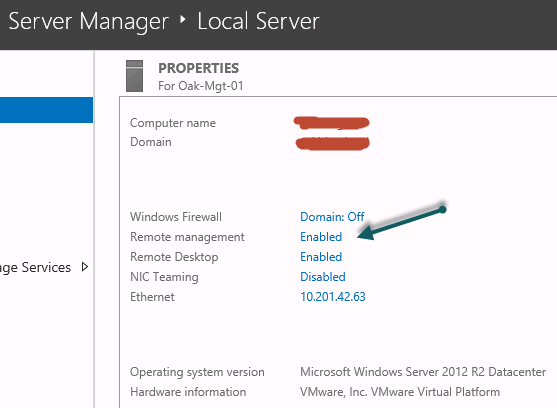 It should be noted, by the way, that Windows Server does not by default allow scripts to be run against it remotely… you have to go into Server Manager and enable Remote management.