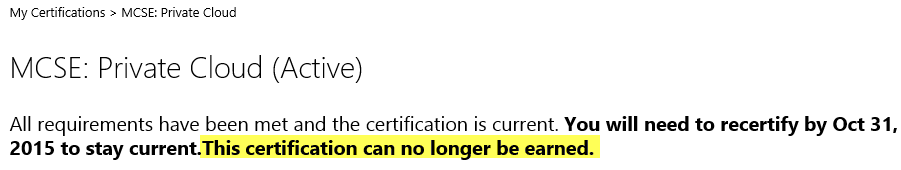 However, for anyone else, the MCSE Private Cloud is still offered and not discontinued.