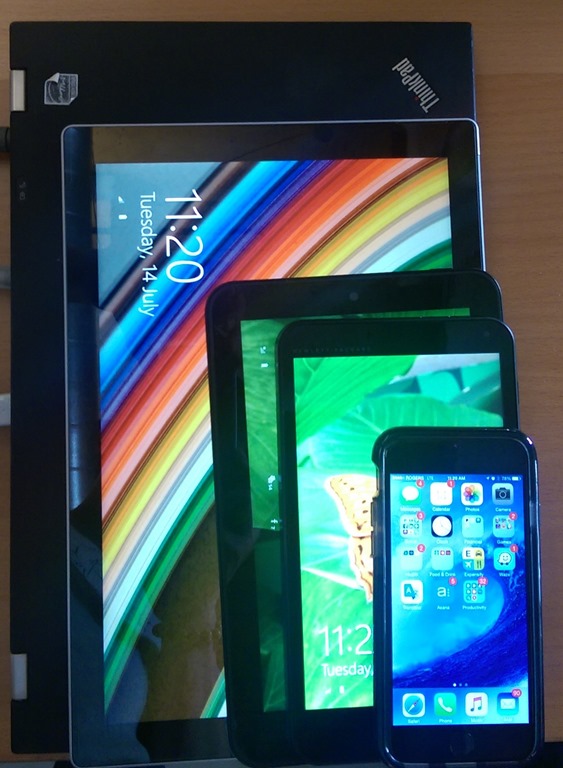I have several devices working on Windows 10, including my personal Surface Pro, my HP Pro Tablet 408, and my work/test Lenovo T420s (docked). Additionally, I have also created a Windows to Go (WTG) key on the T420s, which is really a combination of everything, and a computer unto itself… to prove that, in the middle of this very paragraph I saved my work, shut down the WTG on the Lenovo, plugged my USB key into my Surface Pro, and I am now working very happily in the same place on the same installation of Windows, but on a different CPU, monitor, keyboard, and mouse. That’s pretty cool; expect an article on Windows To Go in a few days time.