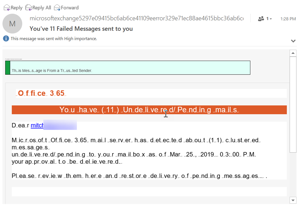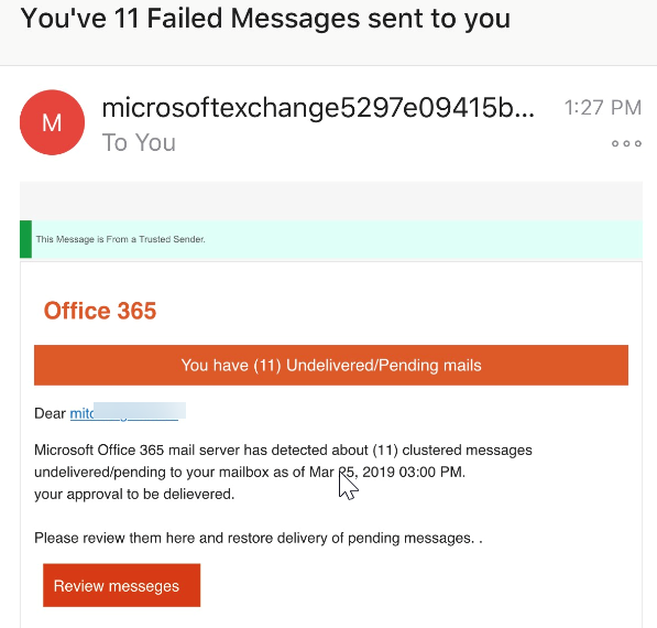 Wow… what a difference! But here’s the problem… how does the average layperson who may only check his or her e-mail on his phone know what to trust? It is getting harder and harder. For those of us who are tech savvy enough to know that you can press the e-mail address and see that it does not end in @microsoft.com, but in @bluemail.ch, we are good. My father would never know to do that… or even think that it might be an issue. Seeing this email on his phone he might wonder how eleven messages failed to get to him, and run to click.