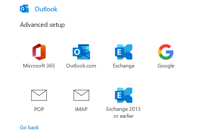 Of course, four of these options are for Microsoft back-end products. Microsoft 365, Exchange, older versions of Exchange, and even the free Outlook.com are all options. However, so is Google. And, because there are other mail servers and services that are less ubiquitous that might require manual configuration, there are still the options for the old standards, Post Office Protocol (POP) and Internet Mail Access Protocol (IMAP).