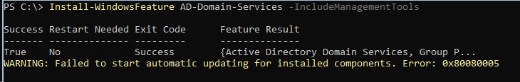 Install-WindowsFeature AD-Domain-Services –IncludeManagementTools