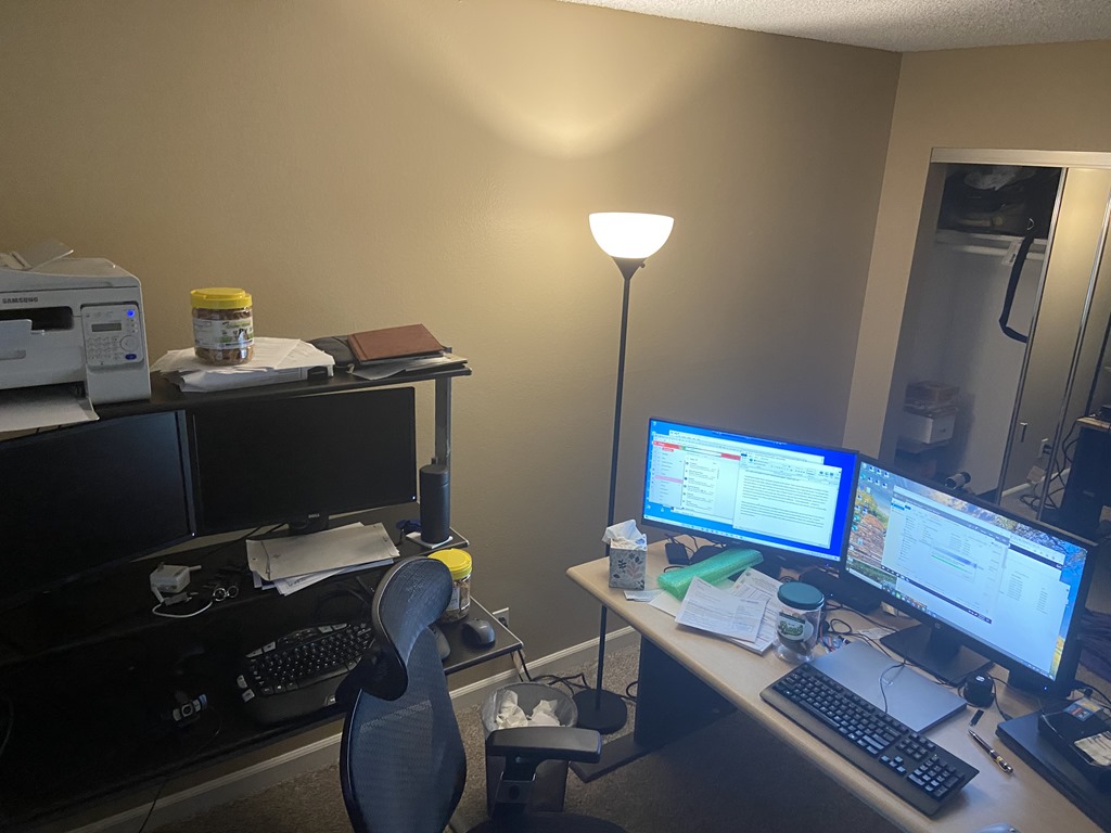 I had a discussion with a colleague who told me that he solved a lot of the space issues by taking his laptop out of his regular work environment and bringing it into his living room and sitting on the couch. I told him I did not think this a great idea because I have always believed what parents and teachers taught when I was in school: Sit up, sit straight, and you will focus better. He told me that was ridiculous, that he had now taken two exams from his couch. He did not see the irony in having failed them both the first time.