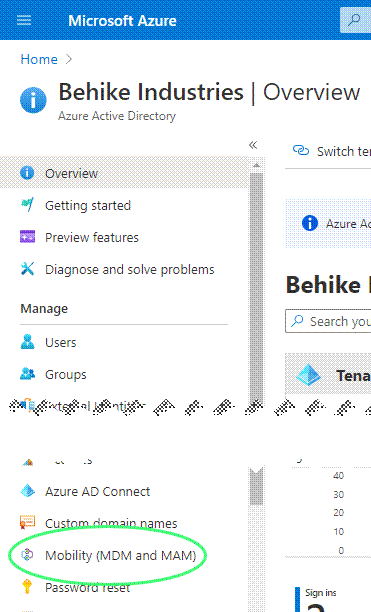 In the Microsoft Azure portal, navigate to Azure Active Directory. Once there, in the navigation pane, select Mobility (MDM and MAM).