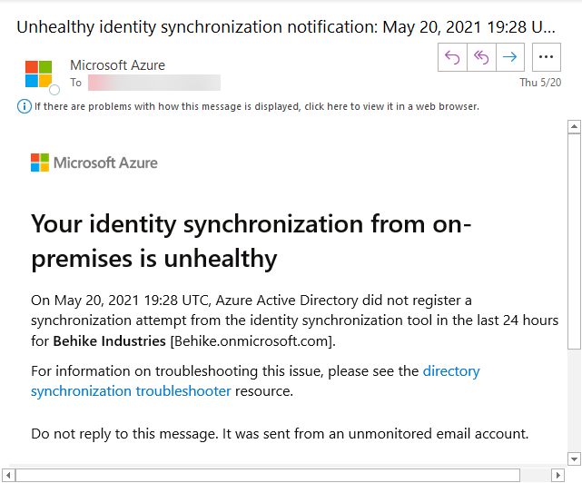 Well of course it is not synchronizing… the synchronizing server is gone. I logged into the Azure AD portal and saw it as unhealthy… but there was no way to unconfigure it. That is what I was going to need in order to start fresh.