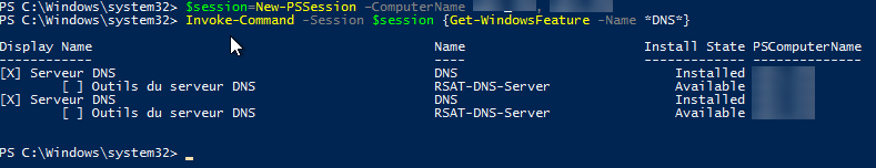 Invoke-Command -session $session {Get-WindowsFeature -Name *DNS*}