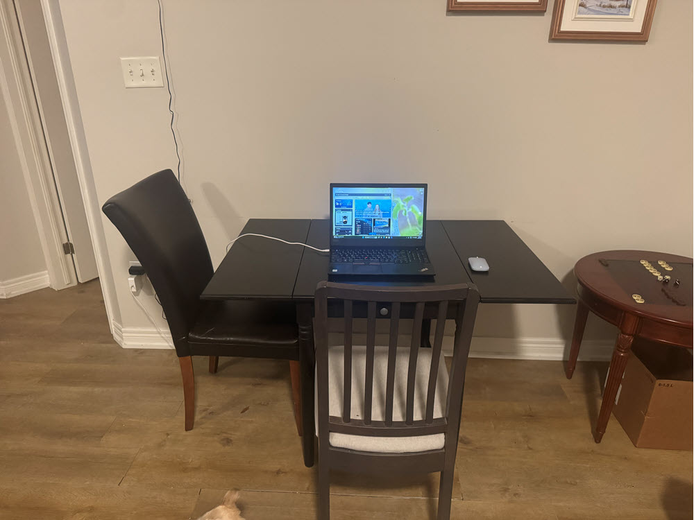 The only difference from last year to last night is that the chairs were reversed, and the side of the table is not folded down. The reason for that is because for an exam I sat last week the proctor wanted me to sit there instead of where it is set up now, and I just had not folded it down yet.